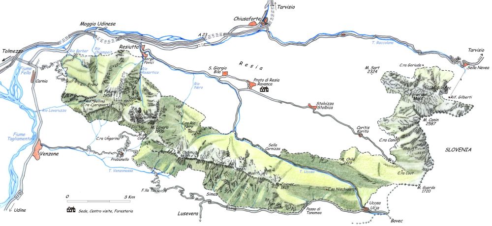 Questo è il mondo del Parco naturale regionale delle Prealpi Giulie: istituito nel 1996, interessa i territori dei comuni di Chiusaforte, Lusevera, Moggio Udinese, Resia, Resiutta e Venzone, per una superficie complessiva di circa 100 km².
