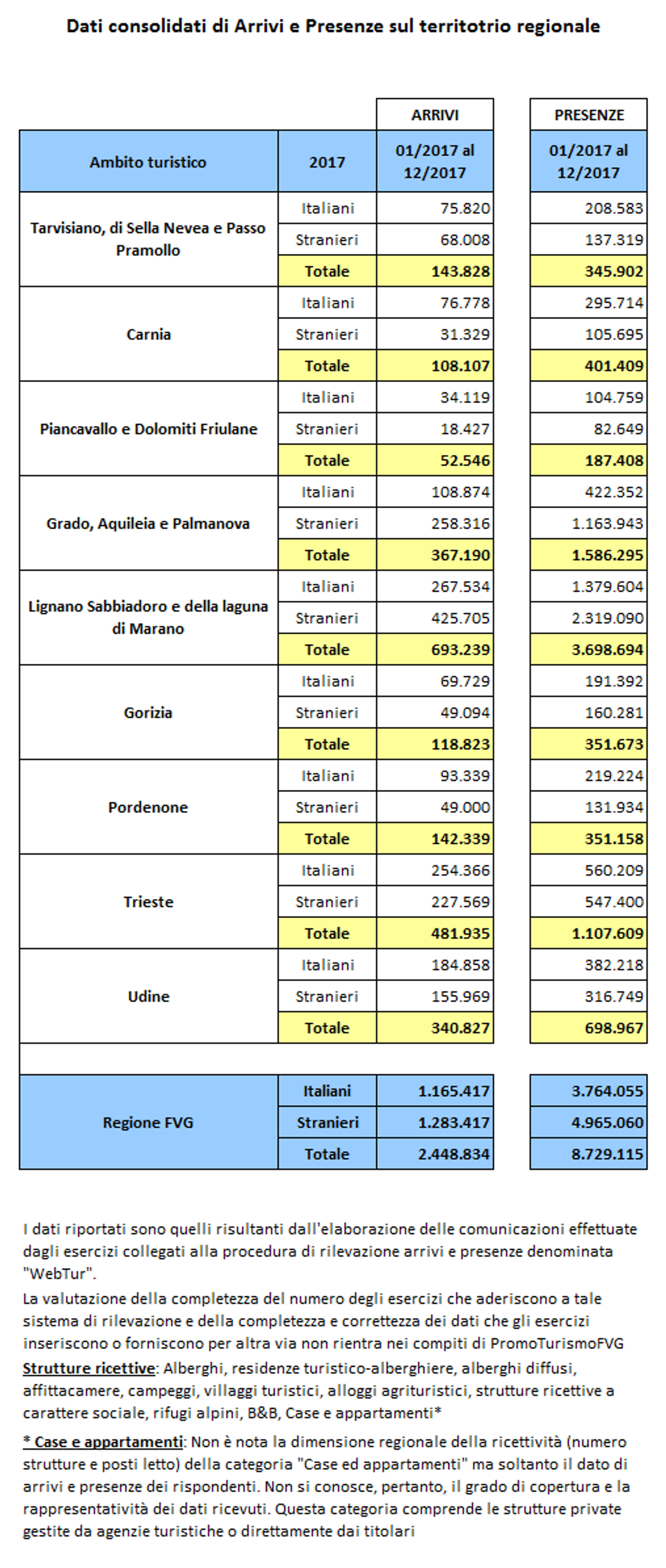 Per richieste dati specifiche, relative a livelli di dettaglio non presenti in queste sessioni, inviare e-mail a statistica.dati@promoturismo.fvg.it, indicando il dettaglio dei dati desiderati e la motivazione della richiesta.