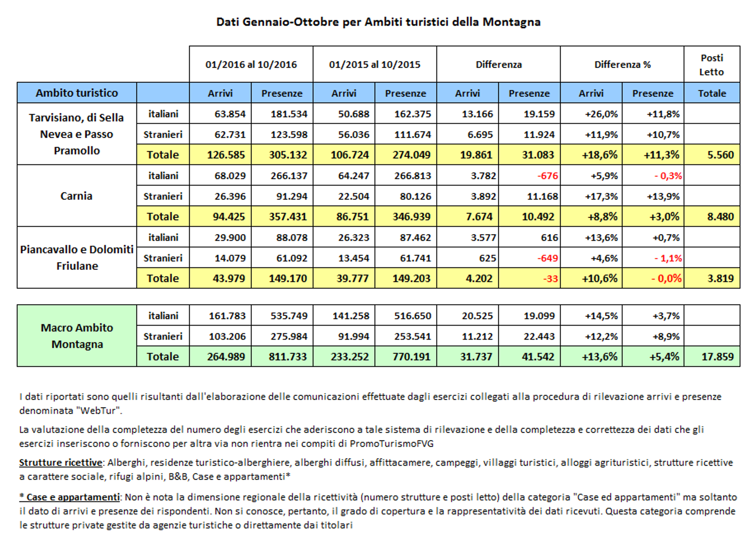 Per richieste dati specifiche, relative a livelli di dettaglio non presenti in queste sessioni, inviare e-mail a statistica.dati@promoturismo.fvg.it, indicando il dettaglio dei dati desiderati e la motivazione della richiesta.